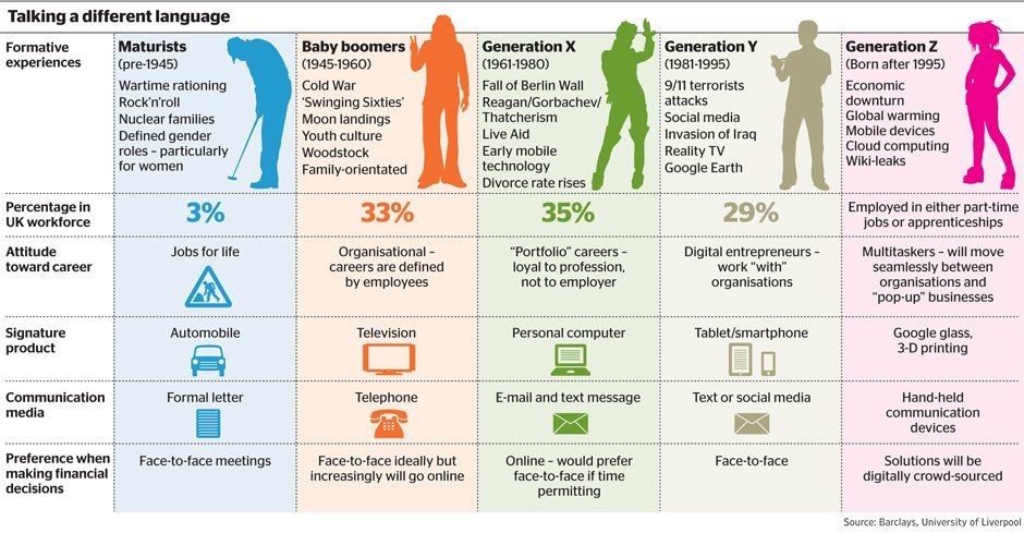 Suvremena povijest protječe u generacijskim ciklusima, koji se izmjenjuju svakih petnaest do dvadeset godina, a svaki ima svoje posebnosti. Događaji i opća klima u kojoj jedna generacija odrasta na isti će način obilježiti ljude koji su u njoj rođeni i počeli odrastati. Različiti izvori navode ponešto različita razdoblja pa ponekad može doći do različitog tumačenja, no također treba uzeti u obzir da generacija u ovom smislu ne podrazumijeva samo period rođenja već i način života, životni standard, društvene trendove, izloženost tehnologiji, vrijednosne sustave…